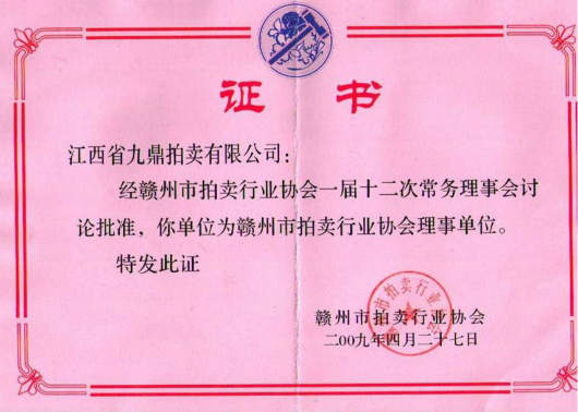 江西省九鼎拍賣有限公司是嚴格按照《中華人民共和國公司法》、《中華人民共和國拍賣法》等有關法律法規而成立的拍賣機構,是國家A級資質拍賣企業、中國拍賣行業協會會員單位、江西省公物拍賣指定單位、江西省拍賣行業協會常務理事單位,是目前江西省規模較大、起點較高的專業拍賣單位。公司遵照《中華人民共和國合同法》、《中華人民共和國拍賣法》等法律法規、政策,依法接受公民、法人或其他組織的委托,并提供財產鑒定評估、過戶代理等業務。